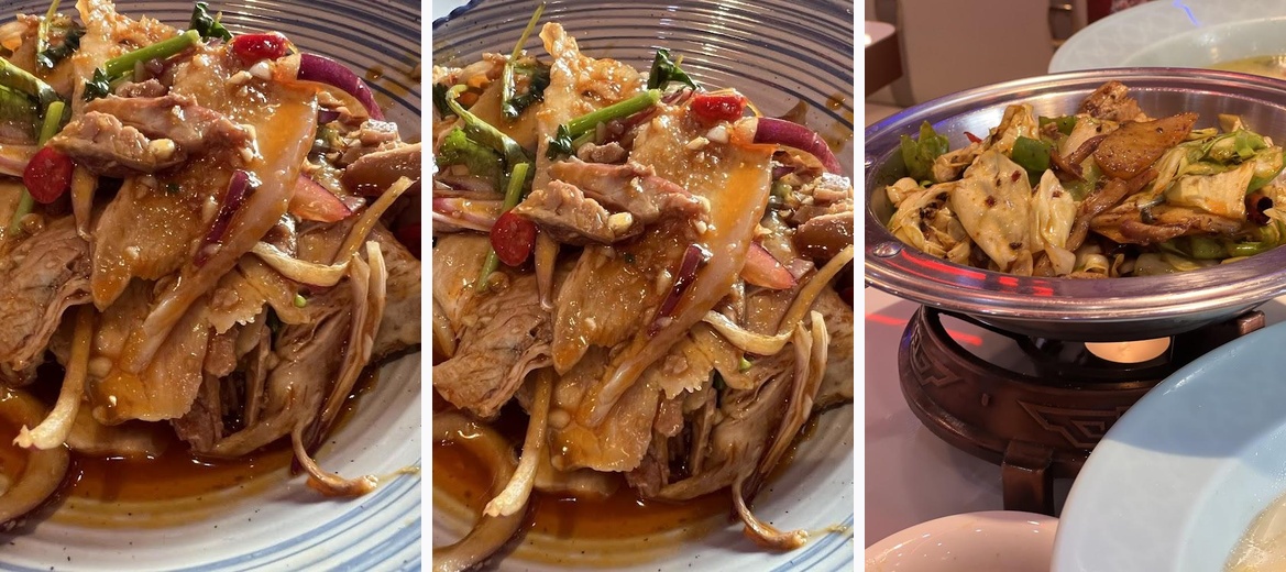 Try the Sizzling Tender Lamb on an iron plate and the Hot & Sour Pork Stomach with mushrooms. For starters, don't miss the Vegetarian Mini Spring Rolls and Crispy Aromatic Duck.